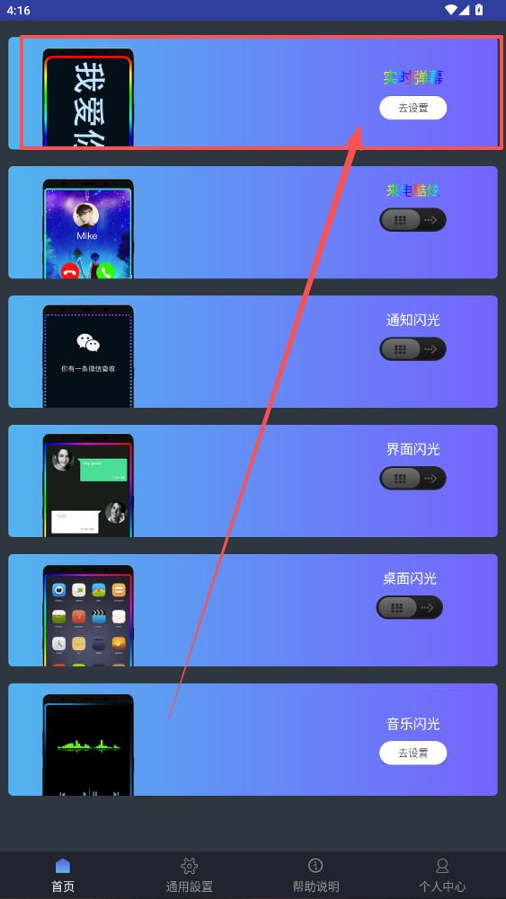 1.进入软件首页,点击“实时弹幕”去设置。