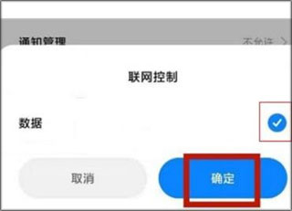 6、在弹出的联网控制对话框,勾选数据选项点击确定按钮即可。
