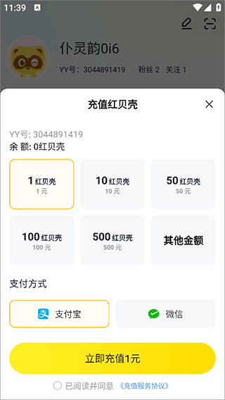 1、用户可以登录YY语音app后进入【我的】页面中点击【充值】