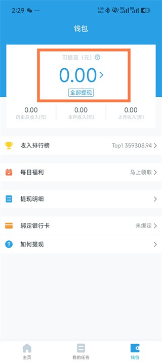 4.做完任务等打款,在【我的钱包】能查看收益并提现。