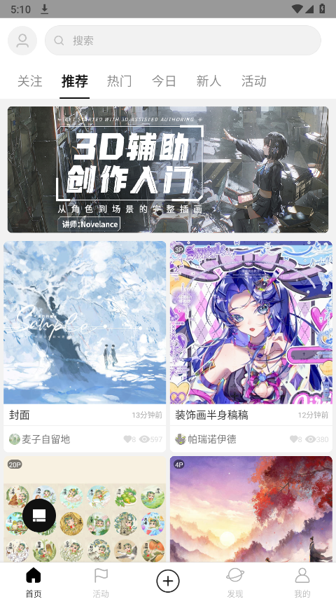 1、在本站下载该软件的最新版本,打开进入首页,可看到3D辅助入门的字样,点进这里是可以学习画画创作的。
