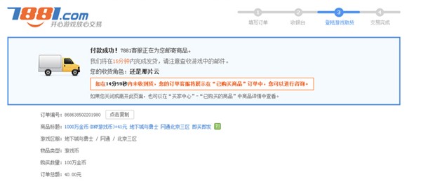 完成付款后,进入收货页面,完成交易。因为交易物品不同,交易完成页面会有不同。