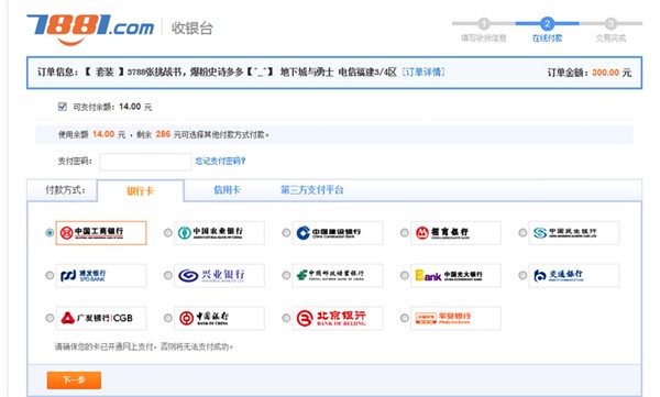 c.如果账户没有余额,直接选择网上银行,信用卡或第三方支付平台在线支付。