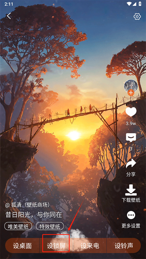 2、然后在该动态壁纸上点击设置为锁屏即可