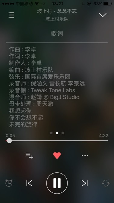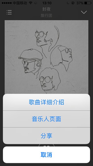 进入歌曲播放页面,左滑封面显示歌词。再次左划显示歌曲简介,告诉你这首歌的故事。