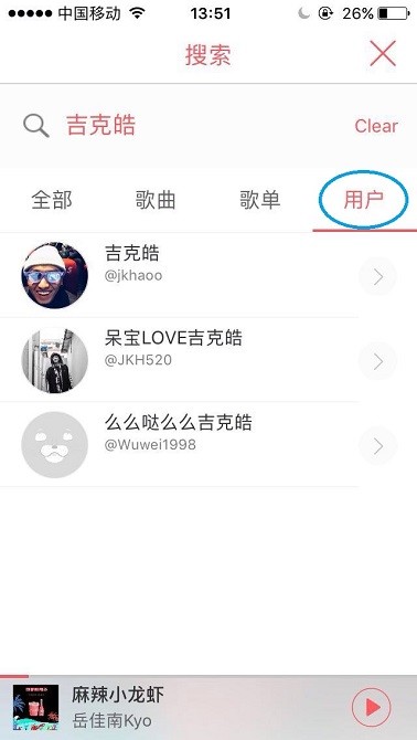 搜索音乐人/用户,进入主页,点击关注,就可以悄悄“监视”他们了。