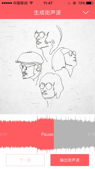 制作街声波,左右滑动波形图,截取歌曲片段。输出短视频,保存到相册,即可分享。