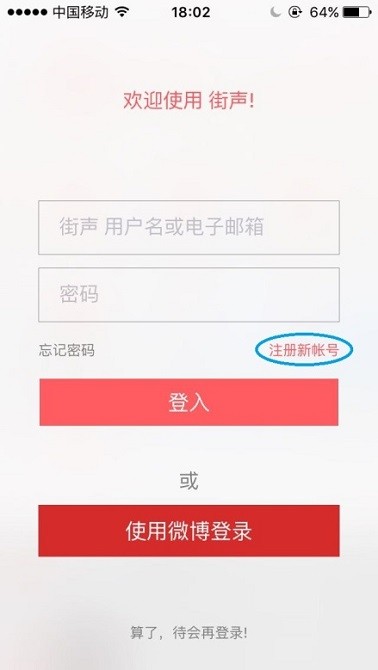 打开街声APP,点左上角圆形图标,找到“登入解锁更多功能”,注册并登陆街声账号。
