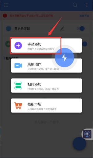 3.选手动添加功能,进入自定义指令设置页面。