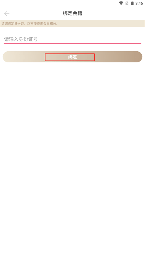 2、输入自己的身份证号,以方便查询会员积分,最后点击绑定就可以了。