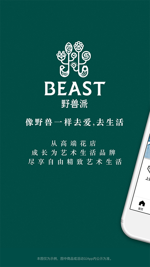 野兽派是由上海野派电子商务有限公司开发的一款时尚创意购物应用,提供服饰家居精品个性化定制,还有紧急订花服务,情人节主题花束等,将爱及时传递。与全球艺术家、艺术文化机构及当下人气明星合作,推出经典款纪念款系列产品。设虚拟社区,包含野兽家居廊、野兽派花店、野兽小姐、贵妇美容室、野兽精选五大板块,提供社区化营销、内容主题导购、精致生活资讯、艺术生活灵感、海淘全球毒物、全球精选美物等服务。