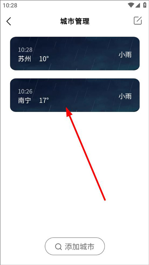 2、进入城市管理页面,点击下方添加城市;