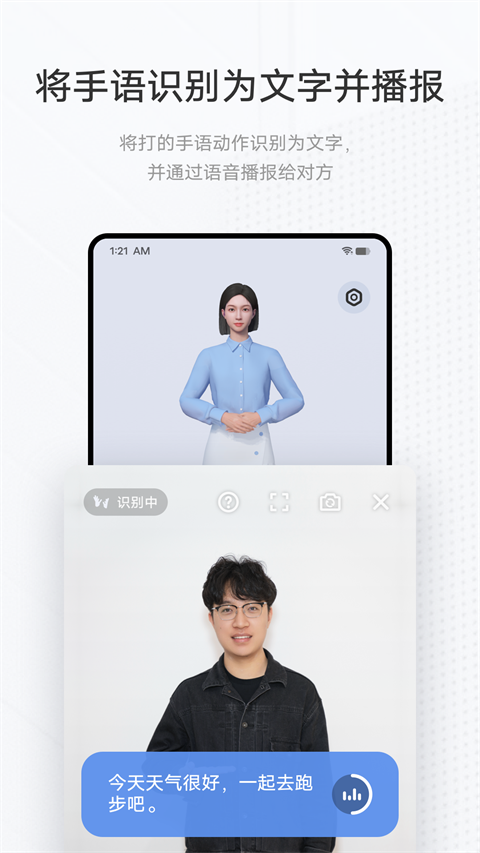 2、精准识别听障者的手语动作,转换为语音播报或文字显示,确保需求被清晰传递。