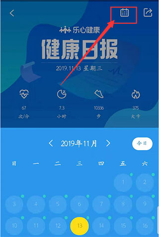 5、点开右上角【日历】图标,就可以选择跳转到之前的健康日报。