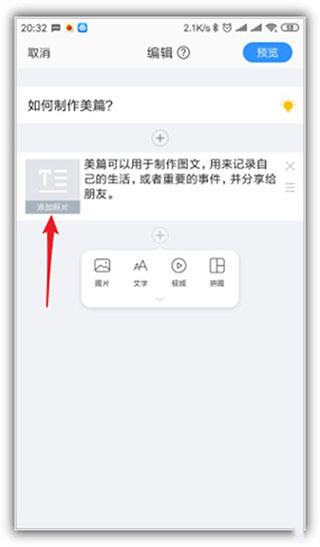 1、到此,一篇综合性的文章就编辑完成了,点击右上角的预览。