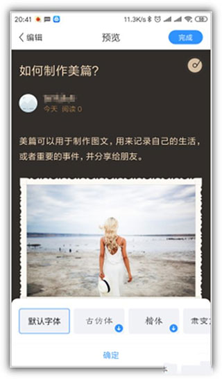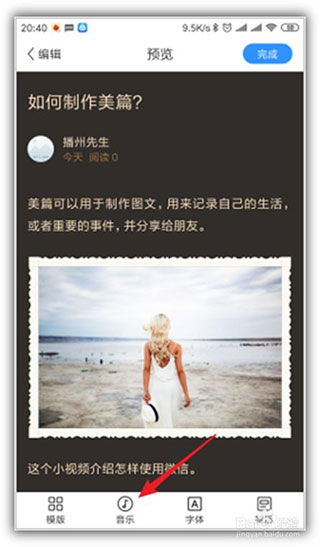 2、下滑页面,即可看到文章的整体样式。确认无误后,点击左下角的模板。