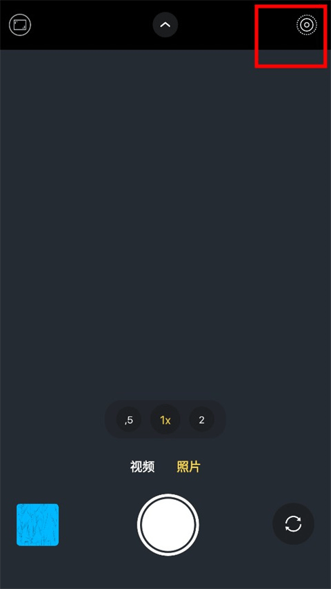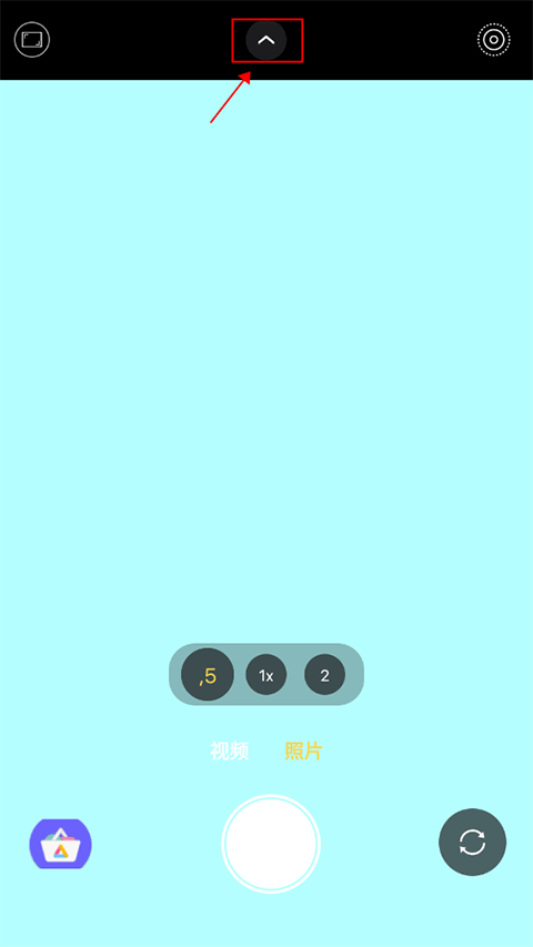 1、在相机界面,点击上方的“v箭头”