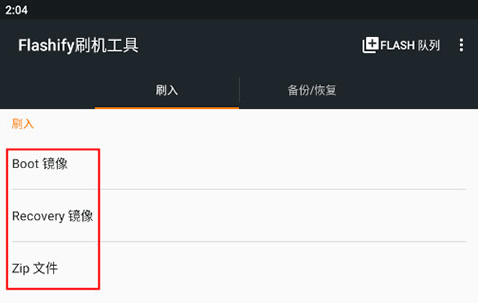 1、进入flashify,点击“Boot镜像”、“Recovery镜像”或“Zip镜像”;