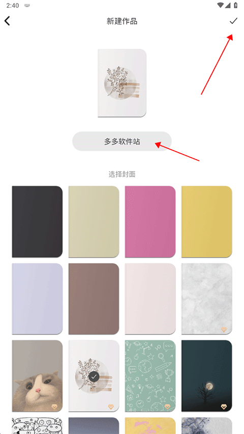 2、然后我们选择作品的封面,以及创建作品的名字,点击确定