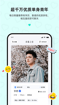所有用户均需通过实名和学历双重认证才能进行互动,每一次提交相册和资料都会经过后台人工严格审核,真实、丰富。