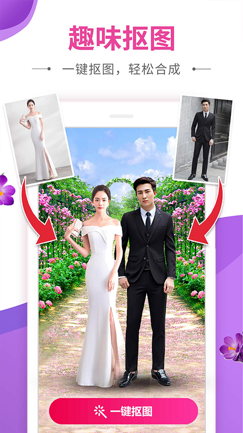 3、支持一键抠图、抠脸功能,用户可以将照片完美融入模板背景和动作特效中。