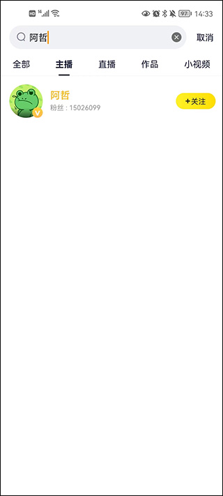 3、通过搜索进入到他的个人界面中心,别忘了点个免费的小关注,方便下次开播提醒,另外在主播的作品中就是回放视频啦。