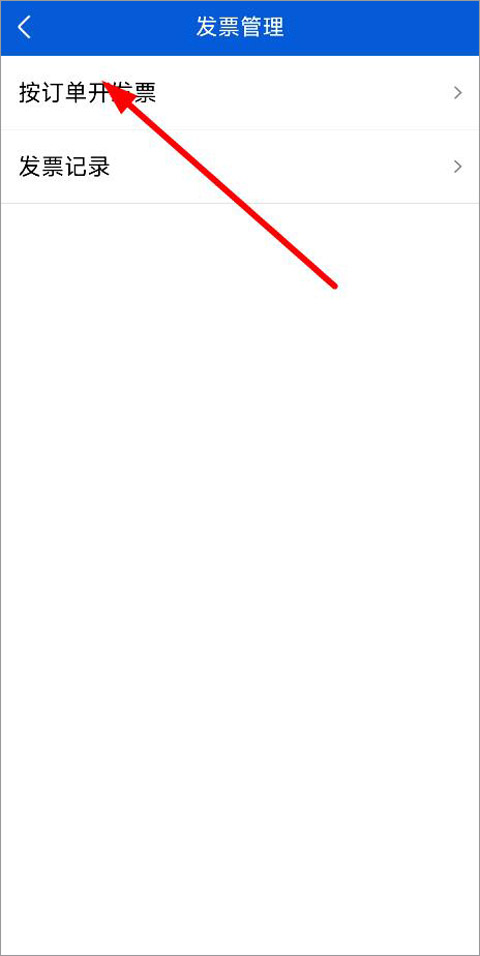 3、打开发票管理页面中,可以看到游按订单开发票、发票记录两个栏目,点击按订单开发票;