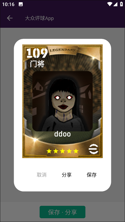4、最后点击生成我们的角色卡,可以选择保存或者分享。
