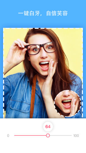 2、智能识别技术,自动定位五官,实现一键塑颜,包括美白、瘦脸、高鼻梁、尖下巴等效果。