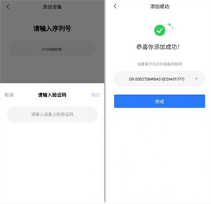 在APP首页点击“添加设备”,在扫描添加设备界面右上角点击“手动添加”输入设备序列号及验证码,即可成功添加设备并修改设备名称。