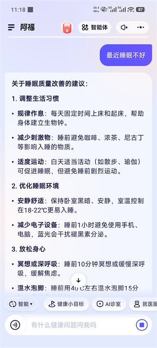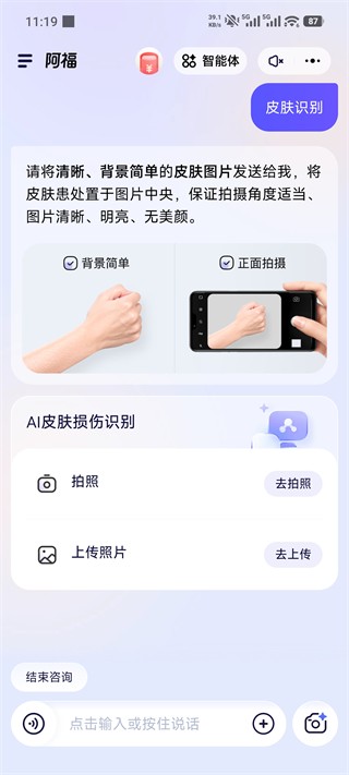 2、专业健康问答,支持语音、文字、图片提问,用户可拍照上传皮肤状况、检查报告、药盒等,获得科普解答。