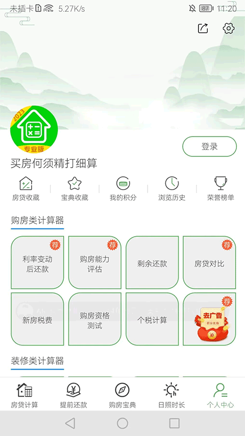 5、“个人中心”还有更多功能,包含购房、装修、网商、存款的所有计算功能,用户可自行选择使用。