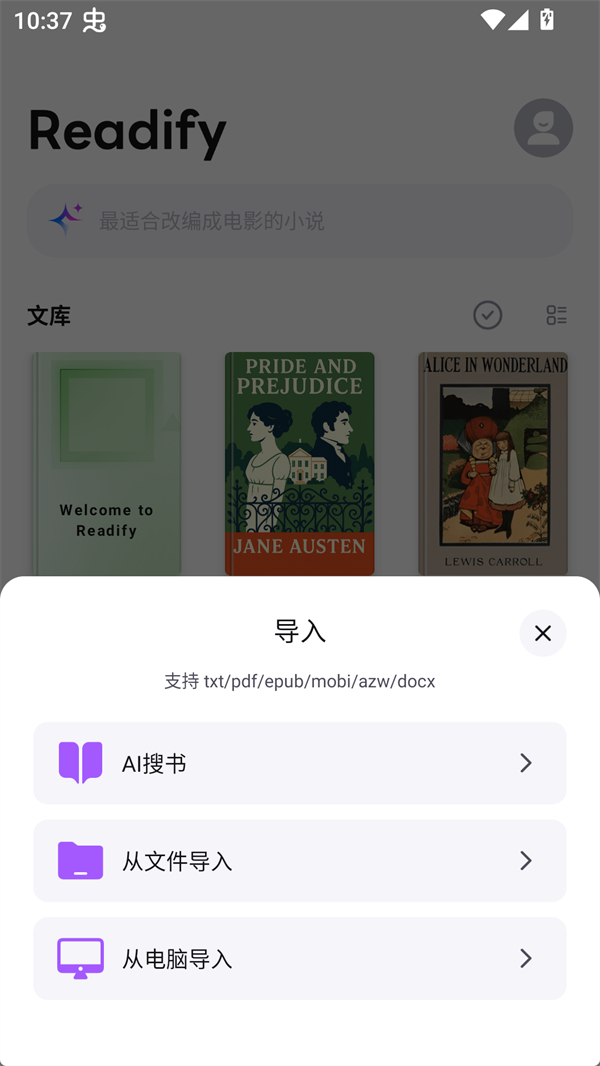 多文件格式支持:无论是PDF、EPUB、TXT、MOBI、AZW等主流电子书或文档格式,都可以被导入并读取/朗读。这意味着你不局限于某一种格式,也便于将已有电子书/资料导入使用。