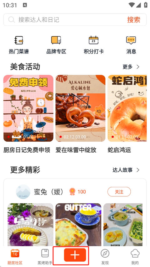 3、汇聚大量美食达人,可以关注喜欢的达人,及时查看他们的日常动态内容更新,获取更多烹饪灵感。