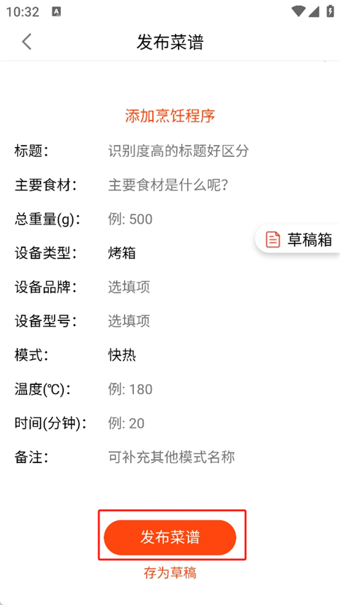 3、然后需要填写下你的菜名,做法和步骤。