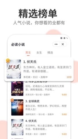 4、【人气书城】新增火热推荐功能,升级的榜单与分类页面,热门小说想看就看,让你再也不愁遇到书荒。