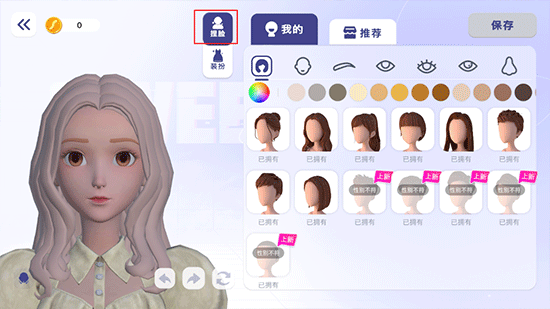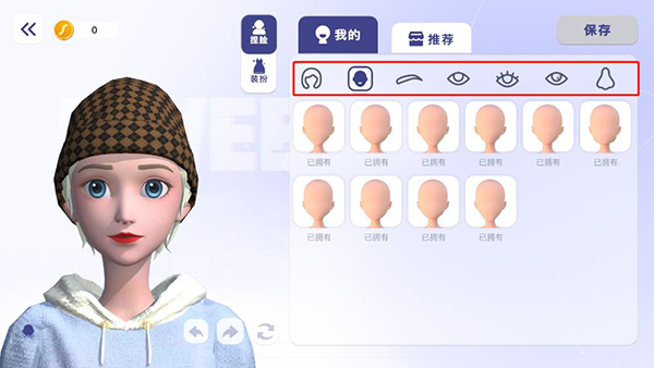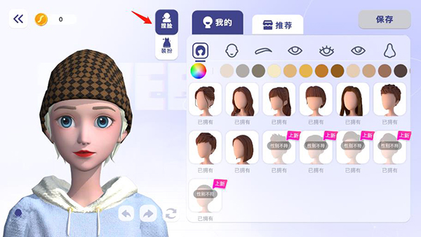 2、点击“捏脸”即可自由操作