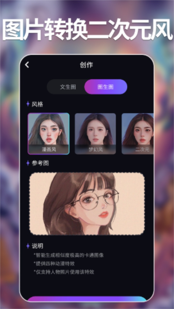 3、可以以图转图,将三次元变为二次元,拥有专属二次元形象。
