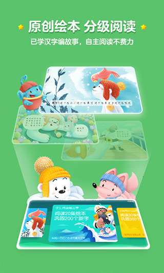 3、科学分级课程体系,根据儿童认知发展规律,将1300个常用汉字分为启蒙、学前常用、幼小衔接三个阶段。