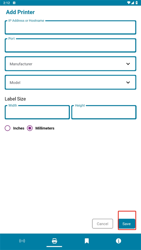 2、输入打印机的ip、端口、制作商、标签大小等,然后点击保存即可;