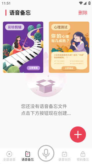 1、点击首页下方的“语音备忘”,并点击按钮新建