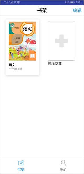 5、下载完成后即可在书架中看到教材,完成资源添加。