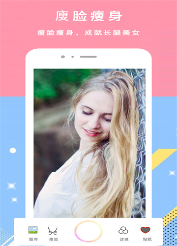 4、滤镜美颜实现美白美肤的效果;瘦身功能让您实现瓜子脸、大长腿的梦想。