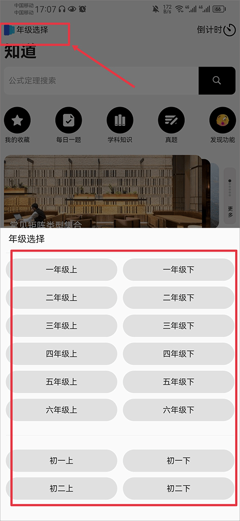 1、打开app,首先在游戏左上角年级选择中选择你所在的年级