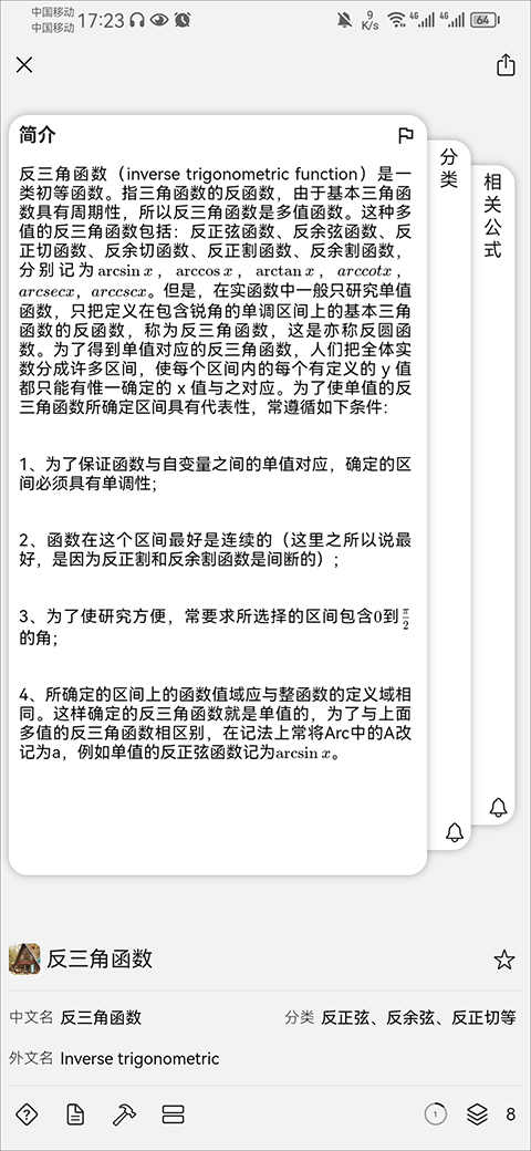 知道是一款专注于数学公式定理查询与学习的教育类应用,涵盖小学到大学(甚至研究生阶段)的数学公式和定理,包括代数、几何、微积分、概率论等多个领域,提供准确、标准、美观的公式定理搜索和查看功能,可以将错题收藏起来,方便后续复习和巩固,提高学习效率。应用界面排版整齐、调理清晰,给人简洁清爽的感觉,支持跨设备数据同步功能,可以在不同设备上随时随地继续学习。