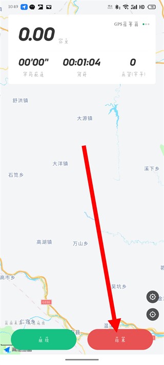 4、跑步结束后,点击结束按钮,完成本次跑步。