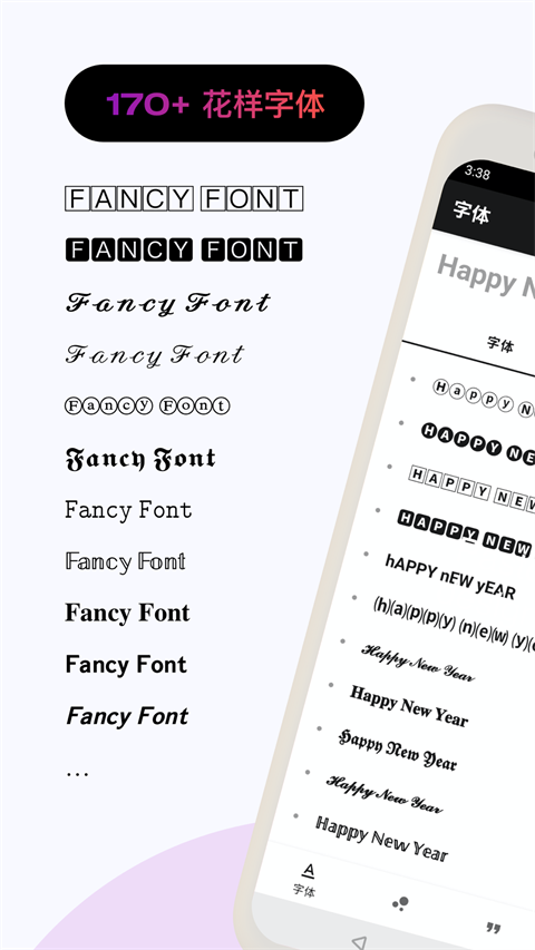 1、海量字体样式,内置超过170种创意字体样式,涵盖艺术字、动态闪烁效果、软萌体、复古体等多种风格。