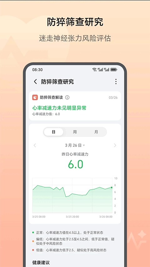 3、高精度风险筛查,采用专业医疗级算法,精准识别心脏健康风险,提供科学、可靠的健康评估。