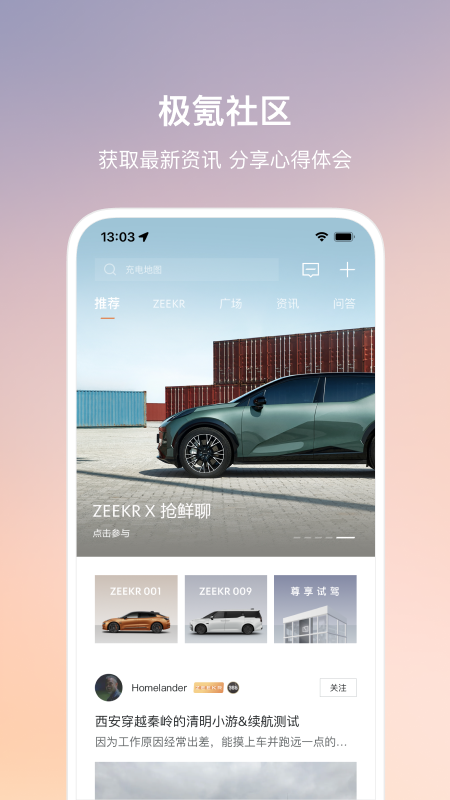 1、在软件的社区中,用户可以看到很多极氪的粉丝们都在纷纷交流自己的爱车的日渐情况,同时该社区还提供了置换模式,资讯、你问我答等等模式。