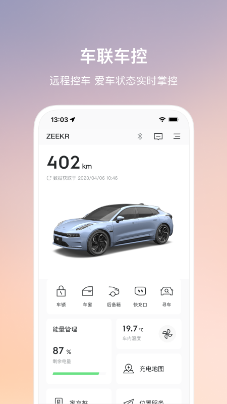 极氪是一款极氪品牌推出的综合型移动服务平台,集在线购车、智能车控、社区互动、极物商城等功能于一体,支持ZEEKR 001等车型的在线定制,可通过3D可视化界面选择配置、颜色、轮毂等细节,实现“所见即所得”的购车体验。集成车门开关、空调调节、车辆定位、寻车等功能,支持蓝牙、NFC、UWB等多种数字钥匙方式,指令传输延迟低于300ms。通过11颗摄像头实现360°实时监控,车辆异常时自动推送警报并记录周围情况。